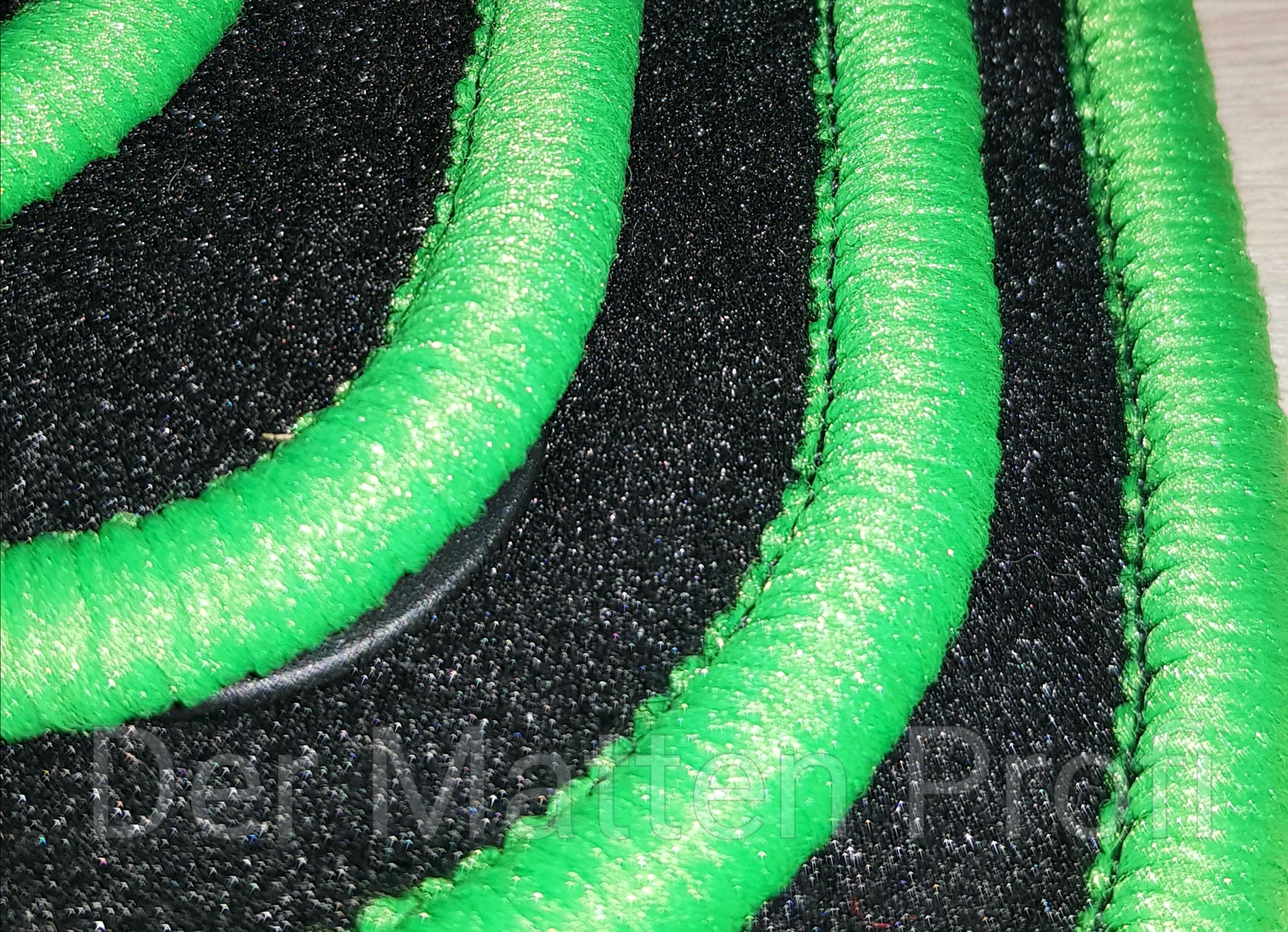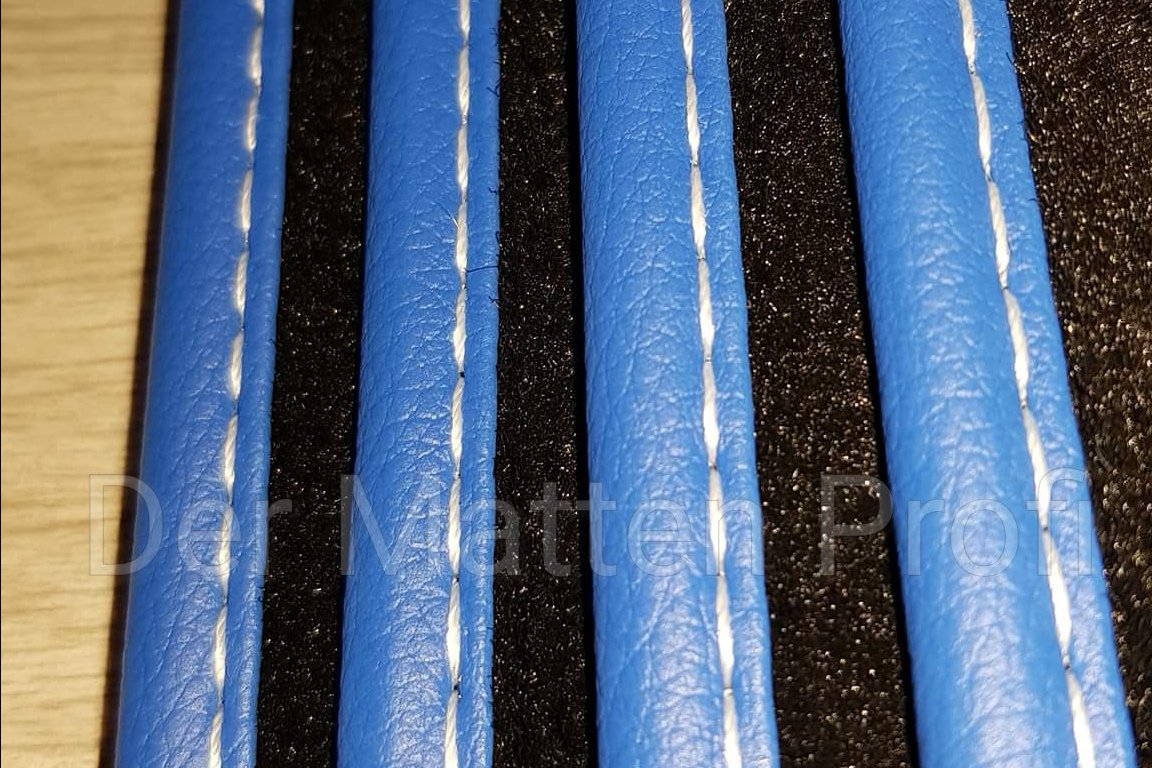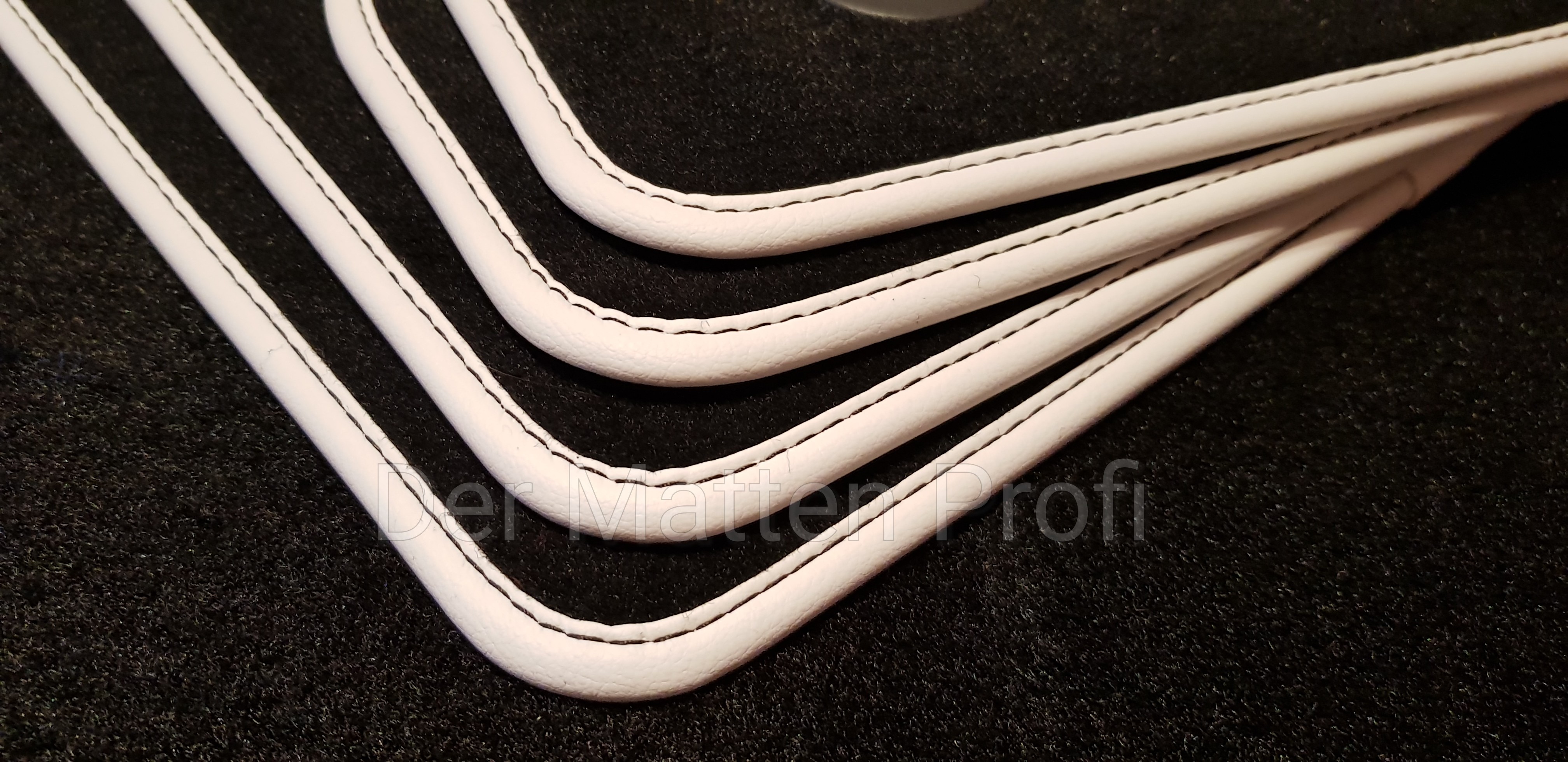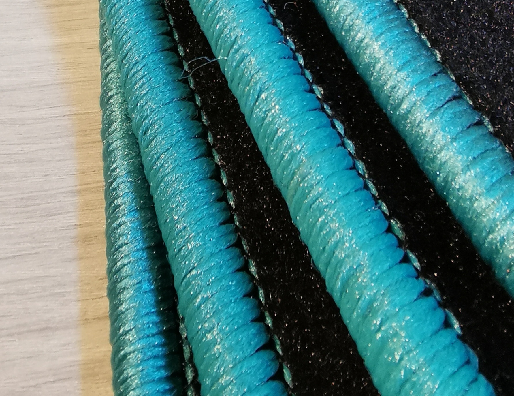 Randeinfassung: Kettelgarn, Stoffband, Kunstleder, Echtleder